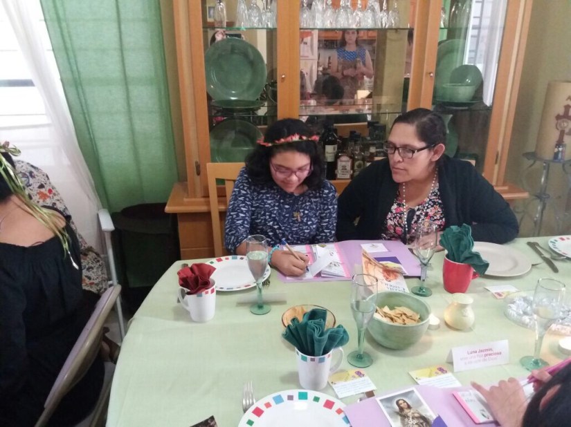 «Encantada de conocer a más mamás con el mismo anhelo de llevar a nuestras hijas a conocer el VERDADERO AMOR.. con ÉL en el corazón… YA LO TIENEN TODO!! 😃😍 Me quedo con el compromiso de orar por este grupo y encomendarnos todas a la Poderosa Intercesión de nuestra Madre la Reina de todos los Santos y sus seguidoras Santa María Goretti y Santa Teresita del Niño Jesús 😇😇/ mama servidora que ya vivió el té con su hija»